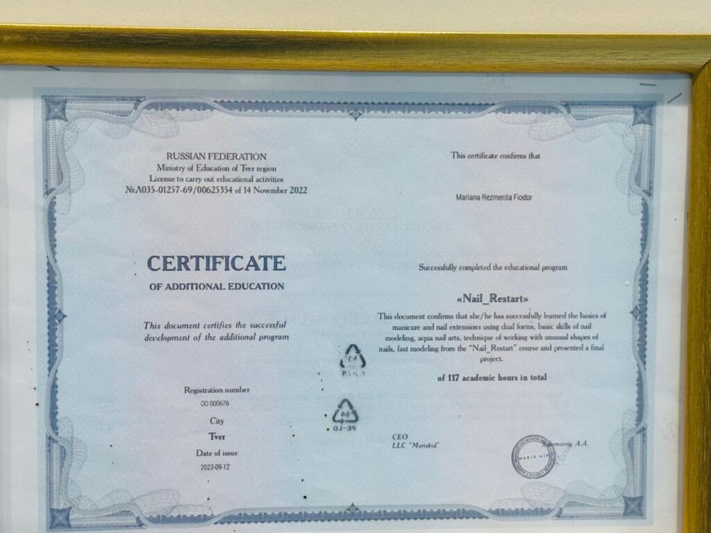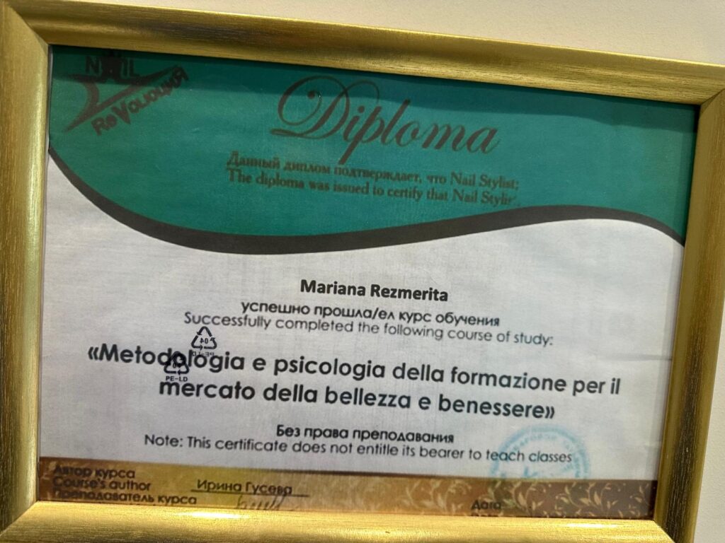Nel corso degli anni ho frequentato accademie internazionali riconosciute e corsi di specializzazione che mi hanno permesso di diventare una docente qualificata nel settore nails.